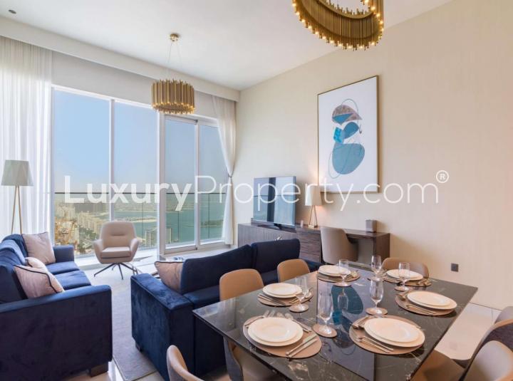 With the three bedrooms you get flexibility. Maybe you have a couple of young kids and want them close by or maybe you just want space for when friends visit or are thinking about working from home now and then. The rooms themselves get enough light that you feel awake first thing. The windows are big so on a clear day you see everything that makes Dubai special. Palm Jumeirah is right there in full view and sometimes at sunset when the light hits the water just right it is even a little bit magical. Plus you spot the Burj Al Arab and Ain Dubai right from your own place so every guest that visits ends up glued to the windows.