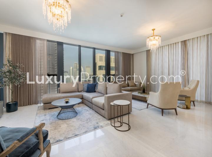 Some places just slow you down the second you walk in. This three bedroom apartment at BLVD Heights in Downtown Dubai has that sort of energy. I have to admit when I first stepped inside I just stopped for a while and let the light wash over me. There are these floor to ceiling windows along the main living area and they pull in so much of the Downtown skyline that you almost feel part of the city before you even reach for your phone. You look out and suddenly you catch the Burj Khalifa in full view without even having to lean or squint.
