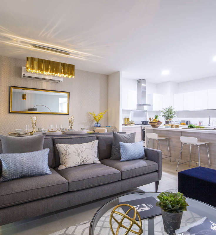 The kitchen honestly feels like somewhere you would want to cook for real. There is space to move, the finish on the cabinets is soft when you open them, and nothing feels skimpy or tossed together. I could picture making breakfast at the bar while a friend lingers with their coffee in the living area. Having this open plan just makes daily life feel less boxed in. Your dining space flows with the lounge and you are never bumping into corners or bumping elbows if two people are helping out. It feels easy. And you know how so many Dubai apartments are just closed off or full of walls this one is the opposite.