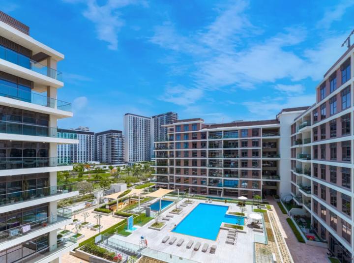 Some places really do make you slow down, and this three bedroom apartment at Mulberry in Dubai Hills Estate gave me that feeling right away. I walked in and the first thing I noticed was the sunlight streaming through the big windows, kind of bouncing around on those soft light wood finishes. You're on the corner here, so all that natural light just pours in and wraps around, especially in the living area. Honestly, sometimes apartments feel a little boxed in but this one feels easy and open, and you actually want to spend time just sitting on the balcony. I lingered there for a while and the view of the pool and the park is really something you look forward to after a busy day. You can just imagine sitting out there in the evening, maybe a coffee in hand or even having a lazy breakfast while the city wakes up.