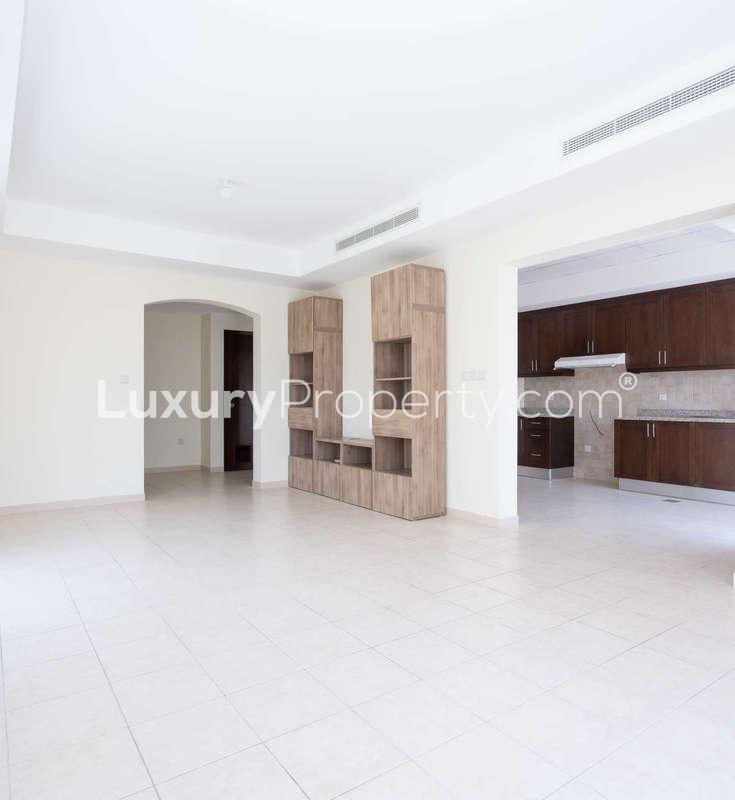 Alma itself is known for these little touches that make life smoother. Spanish style roofs, lots of ceramic tiles, warm colors on the walls and green pathways weaving between villas. It always feels quiet and safe here. You are only a short walk to the JESS School which makes mornings a bit less rushed. The shops and a couple of cozy restaurants are right nearby, so if you suddenly crave a coffee or need fresh bread it is never a hassle. The Arabian Ranches Golf Club is just around the corner too, even if you are just there for a coffee and to look at the lawns.