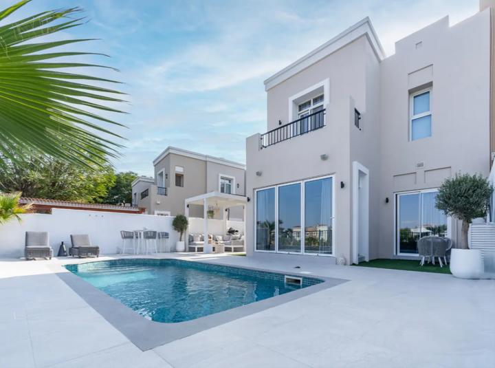 Most people end up outside as soon as the weekend rolls around. I noticed that straight away. The garden has enough space to actually use, and the pool is private which is not easy to find in Arabian Ranches. There is even a built in BBQ and a pizza oven, so if you are big on food or just like the idea of friends over for slow evenings, this part is going to win you over. The pergola is set in the corner for shade, so you never need to chase the sunlight unless you want to. Reading by the pool or just having a coffee here in the morning just feels easy.