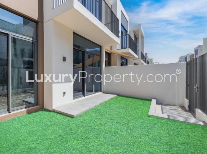 Some homes seem to greet you before you even find your keys. That is how I felt walking up to this three bedroom townhouse in Joy at Arabian Ranches 3. Something about the front path, the trees just starting to get leafy, maybe even the gentle sound from someone watering their flowers next door. It has a sort of atmosphere that is lighter than you expect even before you step inside.