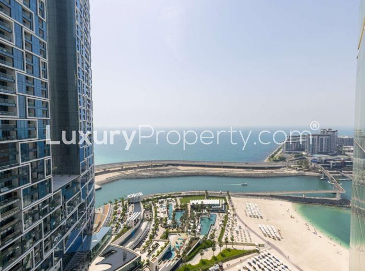 As you come in you get this feeling of wide open space because the living area has these big windows that run all the way up to the ceiling. It is not just sunlight either even the Dubai skyline looks kind of different from here. Sometimes when I am showing this place I end up standing by the glass and noticing all those details the little boats out on the water people down on the sand the whole view just feels alive. Even if you are the type who likes to keep things a bit private the way the apartment is set up means you have your own pockets of quiet through the day.
