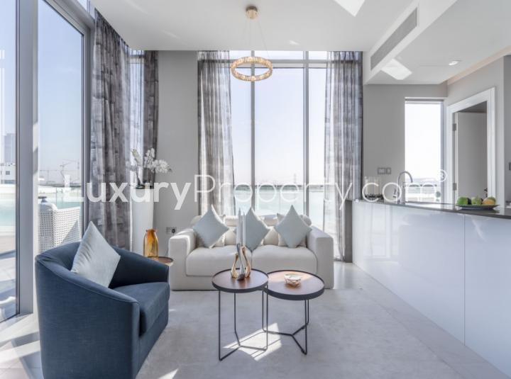 Some homes just make you take a breath as soon as you walk in. This two bedroom apartment in District One, right in Mohammed Bin Rashid City, gave me that slow down feeling the first time I visited. The second you open the door it feels calm but not at all cold and nothing feels staged or fussy. The light from those big windows really makes the water outside look extra blue and bright, and you get that quiet hush that only comes with being this close to the lagoon.