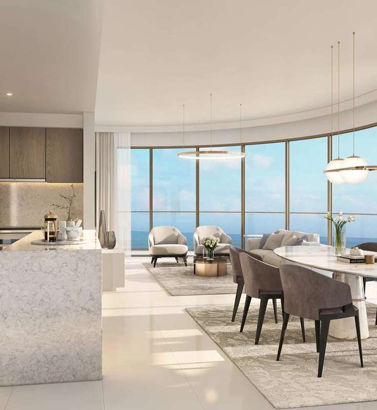 You will notice straight away that the shape of this place just works. The living and dining part blends into one big, comfortable space. If you are cooking in the kitchen and chatting or just want to prop your feet up and gaze out those huge windows, nothing gets in your way. The kitchen is not one of those show kitchens you see that never gets used. It feels made for actual living. You can invite a friend or two, put together a real dinner if you want, and everyone naturally ends up together, leaning over the breakfast bar or grabbing a drink. The design by Elie Saab inside Grand Bleu Tower is easy to spot, but not the loud kind everyone makes a fuss over. Both the Warm and Cool finish options bring this subtle style. It just fits the light pouring in, kind of refined but not fussy.