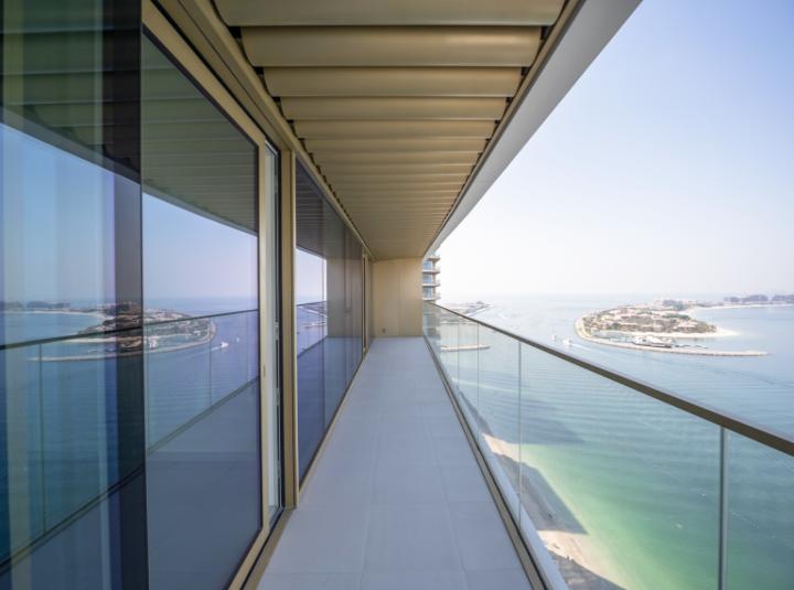 Some homes catch you off guard in the best way. This two bedroom apartment in Grand Bleu Tower 1 at Emaar Beachfront does something like that. You step inside and for a second, time sort of pauses. You hear almost nothing but your own steps, maybe a bit of city life in the distance, but really it is the sunlight that gets you. You can see pretty far from up here. Palm Jumeirah looks different depending on the hour. Sometimes it feels sleepy and gold in the mornings and other times, the blue sea stretches out and you catch yourself just staring. I stood by the window the last time I was here and I could not help but watch tiny boats making their way past.