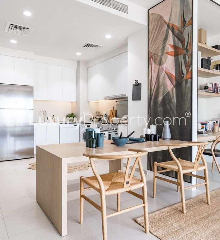 Emaar South is making a name for itself for good reason. You hear things like “Dubai Expo” and “up and coming” tossed around, but when you actually spend time here, you see it's already buzzing. Urbana is where this apartment sits. You'll notice pretty quickly the way the roads wind with tree lined hedges. Evenings are for bikes and laughter. There are always a few kids racing past, parents walking with coffee in hand. It has that lived in, everyday sort of comfort.