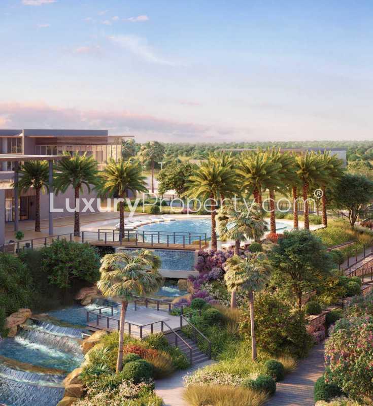 What gets a lot of people is the community amenities. Some folks like to start the day with yoga and here you have not one but two studios you can drop into whenever you want. There is a gym that has everything you need if you are serious plus spaces for something different like a martial arts stretch or a team game after work. The new Al Barari Clubhouse is not far either with a rooftop you will actually want to bring friends to for lazy brunches or starlit evenings when Dubai cools off. If you want to swim the infinity pool is a real one not just for show and you can spend long afternoons out there without ever feeling crowded.