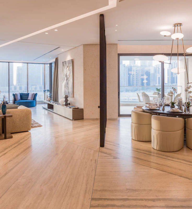 The main living area feels good for gatherings but honestly even if you are just curled up alone with a coffee you will want to stay longer. I found myself wandering over to the windows every few minutes because you can just see so much from up here. You get all the water going by plus that famous Downtown Dubai skyline with the Burj Khalifa smack in the middle. I even spotted a few boats slowly drifting along and for a few minutes the whole city kind of goes quiet except for the distant sound of traffic and water moving past.