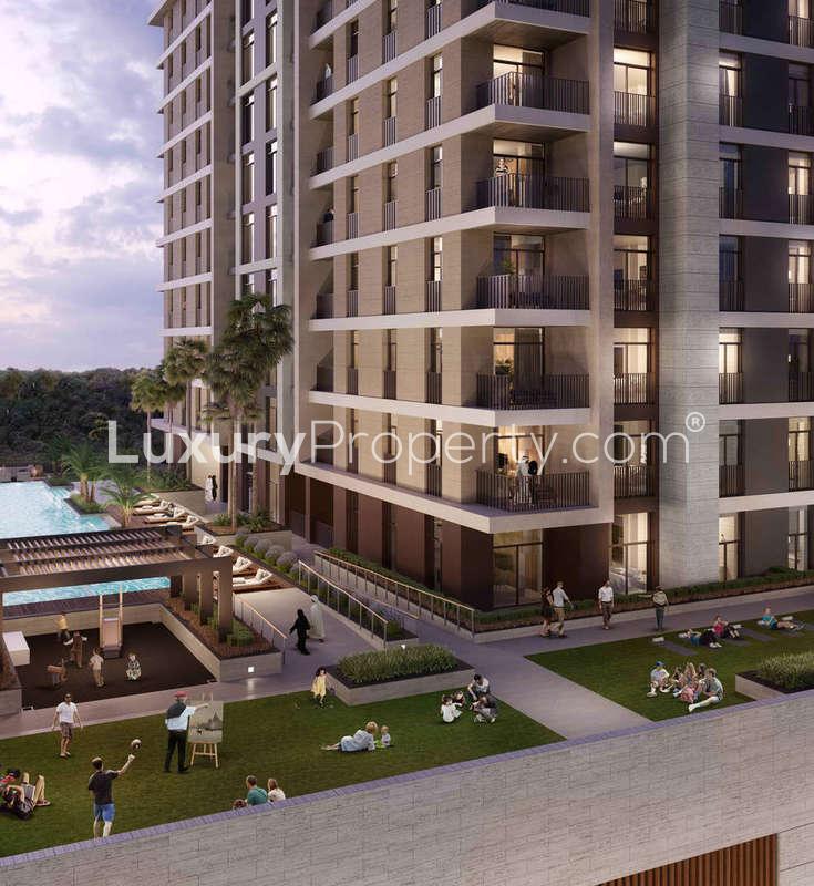 The Wilton Terraces building is something special for this part of Dubai. You look out one side and get that big Mohammed Bin Rashid City vibe, greenery plus modern lines and those quiet streets where sometimes you see someone biking or walking their dog. Downstairs, there are garden spaces set up where I spotted a dad kicking a ball back and forth with his kid. The pool is here but tucked so you are not on display to everyone. There is a gym with real machines, and enough space you are not waiting for a treadmill. If you have kids, the play area is indoors so no worrying about the weather, while the outside barbecue spot looked like the spot for those easy weekend evenings when the sun is not too hot.