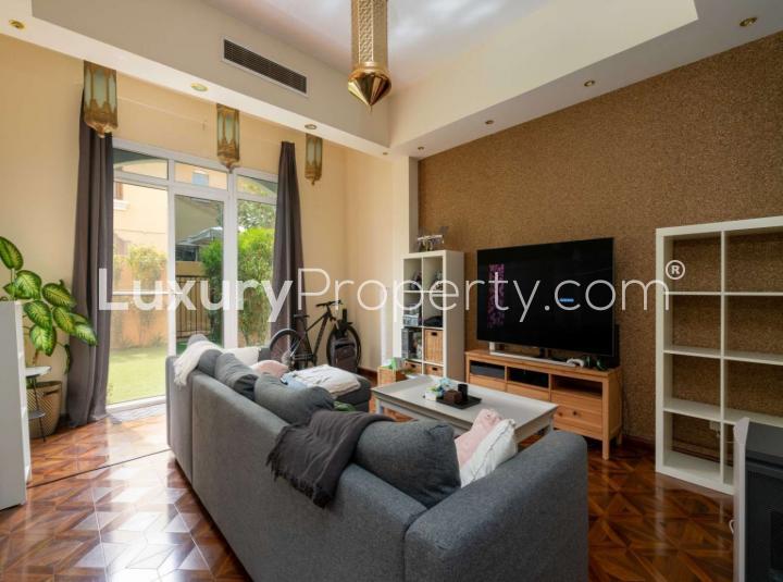 Some homes just make you slow down a bit the minute you get inside and that is kind of what happened here at this two bedroom villa in Palmera within Arabian Ranches. I stopped near the front entry and just listened to how quiet it feels especially compared to the city. There is this gentle peace to the whole place. You notice it even before you see the lush garden out back.