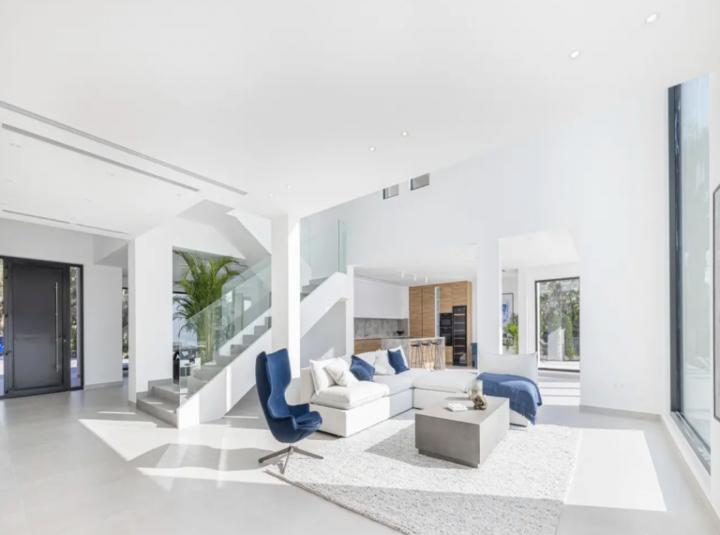 This property sits on a plot of more than ten thousand square feet, so you really do have space to spread out. Even with all that, it never feels overwhelming or empty. When you step through the front door and wander into the open living space, you will notice the light first. Floor to ceiling windows wrap around the living and dining areas so you get different views and sunlight from almost every angle. I could actually imagine sitting here with a coffee in the morning and just enjoying the peace. These rooms really are inviting. They have that comfort where you actually want to put your feet up and stay for a while and not just save them for guests or special occasions.