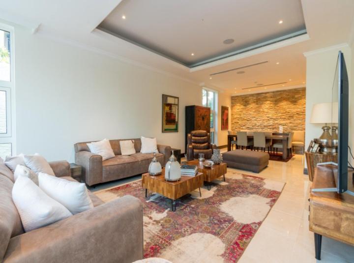 Some homes really just draw you in before you even get the key in the door. That is exactly what happened to me at this five bedroom villa in the Earth neighborhood of Jumeirah Golf Estates. When you turn in off the main road you might catch a bit of sun flickering through those palm trees. It is the sort of area where you see people strolling in the evenings or chatting quietly by the garden gate. There is a feeling in Sanctuary Falls that is different from some of the faster spots in Dubai. It is settled and green with this slow ripple of quiet even when the city is busy.
