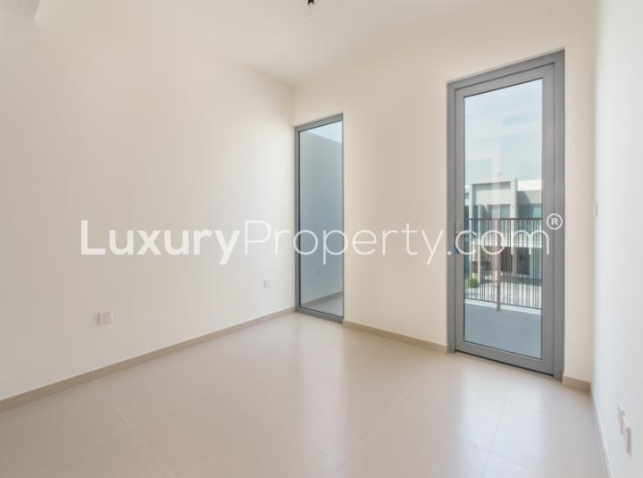 Some homes just help you breathe a little easier when you step inside. This four bedroom villa in Elan at Tilal Al Ghaf does that almost without you realising. It is not loud or showy. When I walked in, I noticed how light falls through every window and you can imagine life unfolding here at a very real pace. It is the kind of place where mornings start with soft sunlight on the stairs and evenings finish with a family dinner or maybe even just quiet time out in the garden. The living room actually feels lived in already, even empty. I stood there for a while and looked out toward the greenery. There is always some little movement outside, a bird in the bushes, or the sound of a neighbours kid on a scooter in the distance.