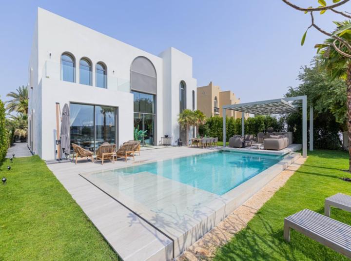 Then outside is honestly my favorite part. You get a fully landscaped garden that looks thought out but not fussy. There is a sunken fire pit set off to the side where I would probably spend half the winter just hanging out or catching up with people. The pool is private with enough space around for lounging but it does not take over the whole garden. The air smells fresh in the mornings and sometimes you pick up little sounds of children riding bikes or music from someone up the way. It is peaceful but the area still has this lived in feeling. No sense of being completely cut off here like in some Dubai villas.