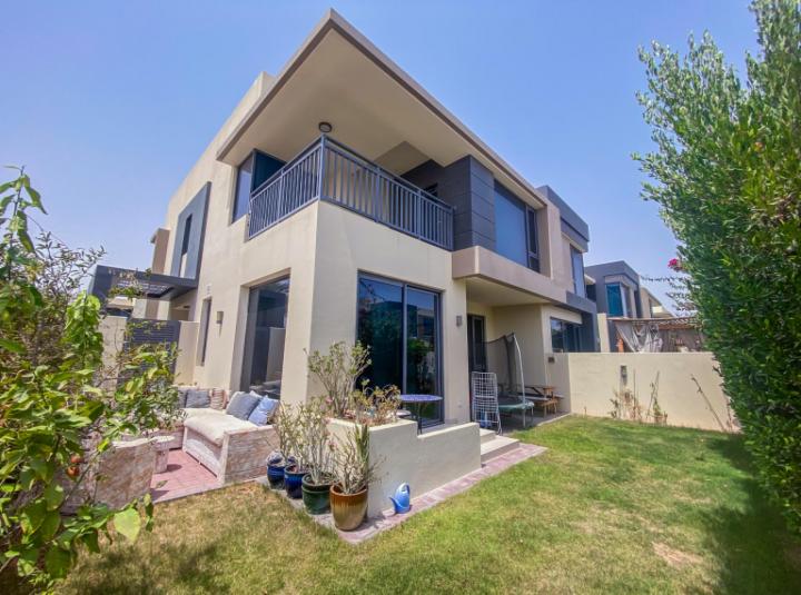 Now for the backyard. The private pool is sort of the centerpiece, and you can tell it would be where everyone ends up on weekends. There is just enough space for lounge chairs or maybe a barbecue set up, depending on what you are into. The garden is already looking green but you have room to make it your own. I keep thinking about adding a swing or growing some tomatoes, maybe a little herb patch. Most evenings you will actually see people out in Maple, kids riding bikes, neighbours waving as they walk by. This part of Dubai Hills Estate has a community feel you do not always find elsewhere.