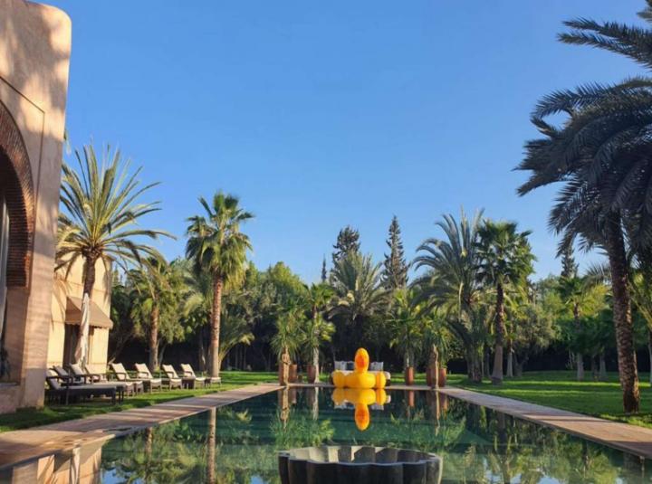Some homes just have a way of making you relax without even trying. That is exactly how it hit me the first time I walked into this six bedroom villa in Palmeraie Marrakech. The light comes in soft through the windows. You end up just standing there for a moment breathing it all in. Once you step out onto the grounds you realize why people always talk about Palmeraie being this private green part of Marrakech. There are palms everywhere and all the city noise just feels like it is miles away even though the center is actually only a short drive. If you want good coffee or that classic Marrakech excitement of the souks you are basically ten minutes out. But when you come home the world is quiet. It is all your own.