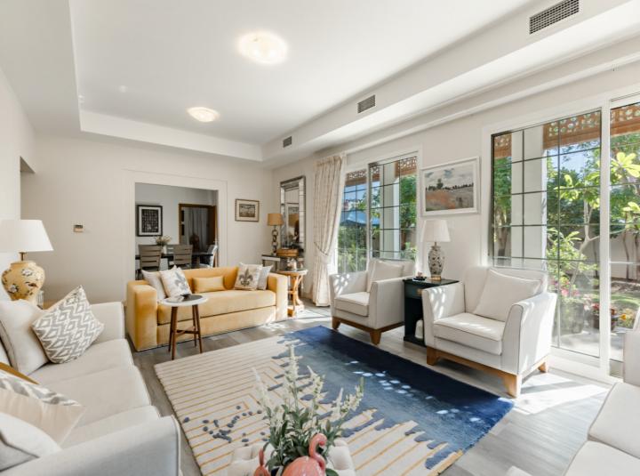 Stepping inside the villa, you can tell straight away this is a real family home in Rahat. The first thing you get is all the light. Every floor to ceiling window seems to bring the garden right inside with you. I noticed you do not really need to switch on a light during the day. The main living area has enough room for everyone to spread out but it is not one of those places where voices echo and it feels cold. I remember just settling into the little corner by the window, watching the afternoon sun move across the floor. That is a detail you do not always find in villas for sale in Dubai.
