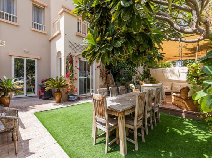 What really stood out for me about this Emirates Living villa is how the garden backs onto the park and the pool area. Last time I visited I heard laughter and saw a few children riding their bikes along the walking path right behind. Even if you do not swim every day, there is something special about having that view of open green instead of someone else's patio. The park path connects out to more of The Springs so if you have a dog or enjoy a slow early morning walk, the whole area opens up for you. Sometimes you even see folks out for a jog with the sun just coming up.