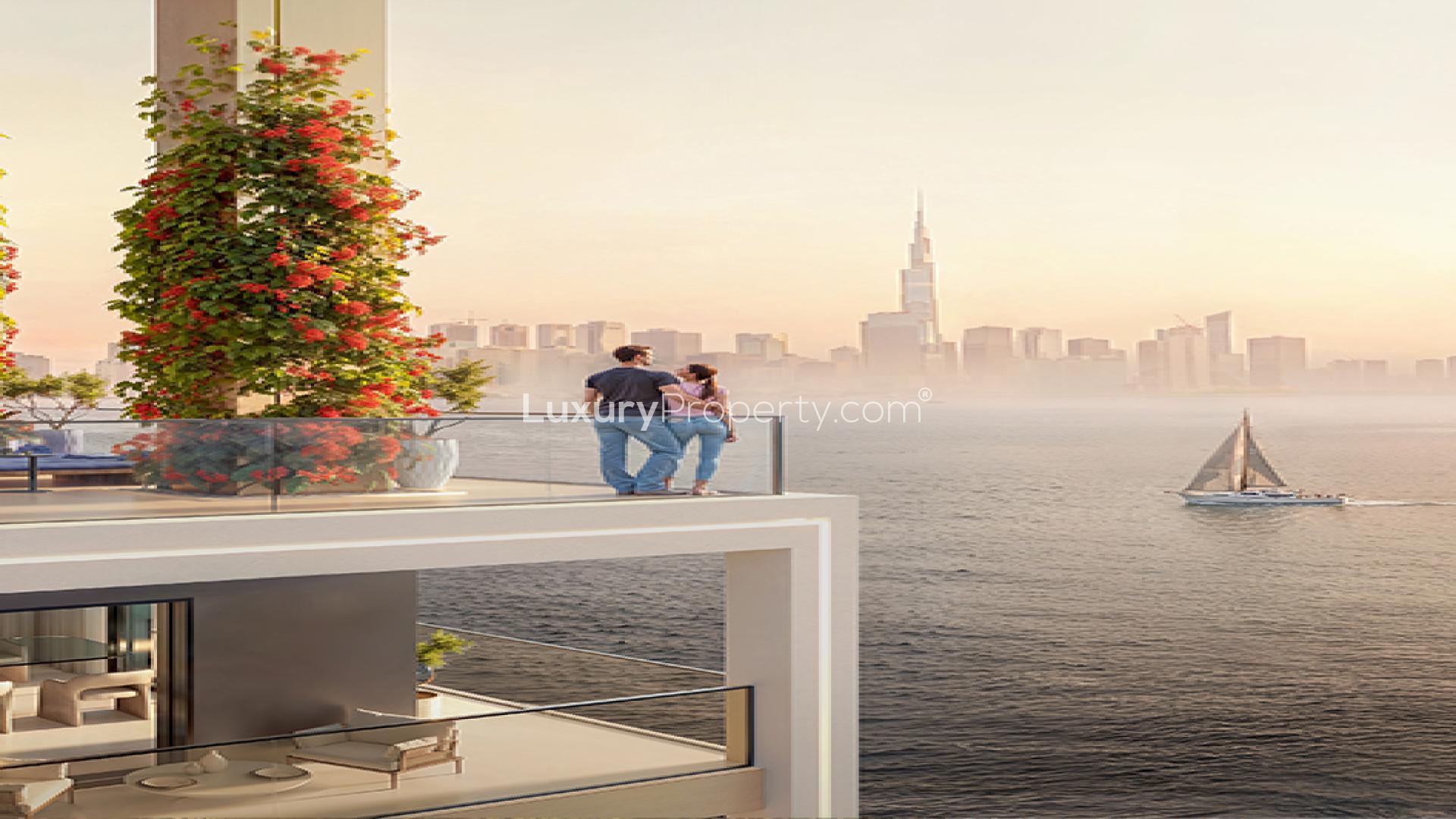 Step inside and discover interiors that marry bold aesthetics with understated luxury. The contemporary façade gives way to high-end finishes, spacious layouts, and thoughtfully designed communal spaces. Residents will enjoy access to elite amenities including rooftop football facilities, wellness lounges, outdoor relaxation areas, and concierge services that ensure everyday ease. Each unit offers panoramic views of the Arabian Gulf, allowing for a sense of escape in the heart of the city.