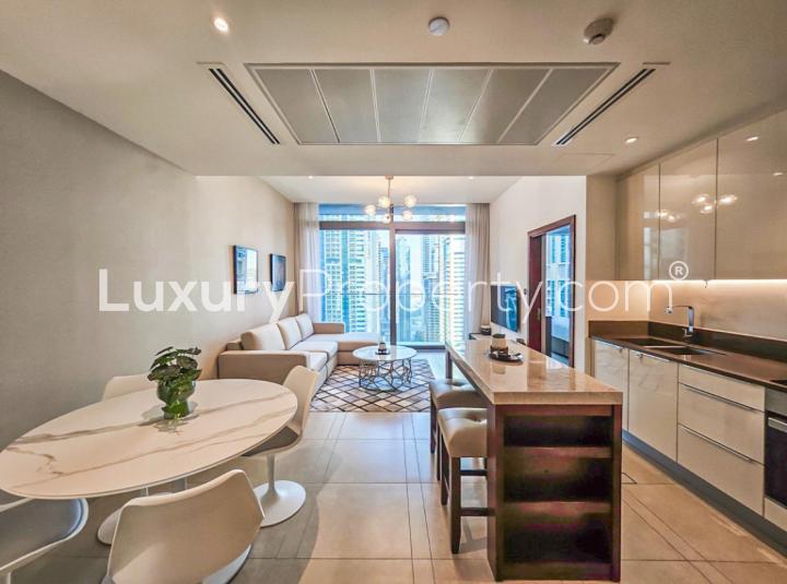 Some places feel a bit different the second you walk in and this Furnished one bedroom apartment at Marina Gate 2 in Dubai Marina is definitely one of those. I dropped by in the afternoon and you just get this sense that you want to take your time here. Maybe it's the way the sunlight catches on the living room floor or the breeze you get coming in off the marina. Honestly you can almost forget you're right in the heart of the city because it just feels a little quieter up here.