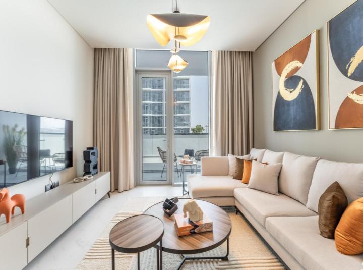 Some homes just have a certain feel as soon as you walk in. With this one bedroom apartment in District One Phase Three, Mohammed Bin Rashid City, I noticed it right away. Light streaming in through the big windows and this quiet, kind of calm energy. Honestly, you can forget the busy day for a minute and just breathe when you are here. You will see right away that it is not your typical apartment. The terrace is special. It connects right to the balcony so it feels like you have your own little stretch of outdoor space and the view of the community is wide and open. Sometimes you catch the sunset colors just sitting out there or you hear the faint sounds of birds in the morning.