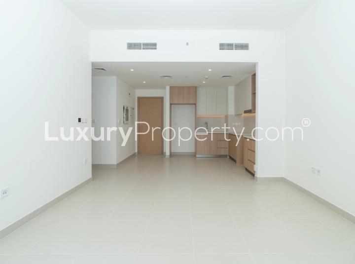 Some places just feel like you can settle in almost right away. This two bedroom apartment for rent at Island Park in Dubai Creek Harbour does that for me. There is something about the light when you walk into the open living space, the way it bounces off the floor and sort of lifts the mood. You get these big windows which always help and when you step out onto the low balcony it is enough to see who is out in the community without feeling like you are being watched yourself. It feels private but you are not closed off.
