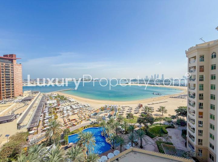From the balcony you can enjoy the sunlight while overlooking the Palm Jumeriah Community. In the shade on the balcony and from the bedrooms, enjoy the beautiful sea views, capturing the sunsetting in the evening.