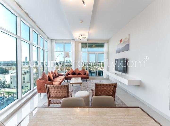 The living room gets plenty of light most of the day. The big windows pull in the skyline in a way that feels sort of cinematic sometimes I just stood there and watched the city go by below. It is not one of those places where you look out and just see another wall or more concrete. You get views that remind you of why you picked Al Sufouh in the first place. And if you step out onto the balcony you can actually feel the pulse of the area you hear a bit of life from the shops below kids laughing in the distance sometimes the smell of coffee floats up if the breeze is right.