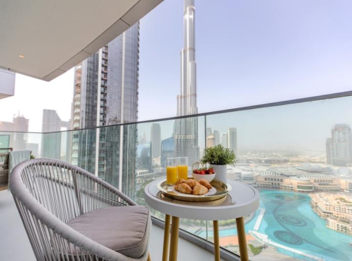 Some homes just have a way of slowing you down the second you walk in. This three bedroom apartment in Opera Grand right in the heart of Downtown Dubai is exactly one of those. The first thing you will probably notice is how much sky and city you can see from up here. I could not help just lingering by the living room windows for a bit while the Burj Khalifa kind of fills half your view and the Dubai Fountain is right there too. You almost forget how central you are for a moment. Honestly, you cannot really miss the views. Every single window just pulls you back to that skyline like it is showing off a little but in a really good way. Every day I visited, I found myself pausing to just watch the city. It feels like you are somewhere important but also easy.