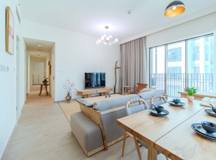 Some homes just give you that quiet moment as soon as you step inside. This one is a three bedroom apartment in Breeze at Creek Beach right in Dubai Creek Harbour and it really makes you slow down a bit. There is this certain softness in the light here that just floats through the open living room. Sometimes I notice my breathing actually gets calmer. One time I just leaned against those big balcony doors and watched the water move below. If you open the glass you catch a mix of city sounds and that lighter feeling you only get by the water. You hear maybe a boat passing or the laughter of neighbours wandering back from the beach with sandy shoes and towels everywhere.