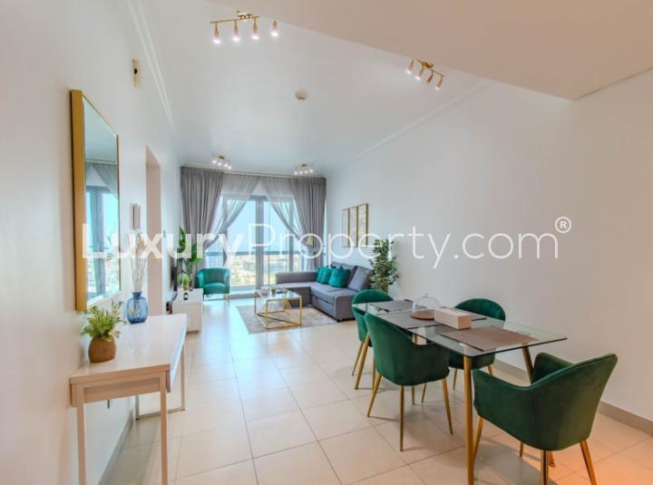 First up, this apartment is fully furnished. Not overcrowded with too much stuff but just the kind of furniture you can actually picture yourself sinking into after a long day. The living room really does feel open and laid out well you will not be crashing into a dining table or couch just walking across the place. It all works together. The kitchen is tucked in its own little space but still open to the living and dining areas so you are not shut away when cooking. Trust me the kitchen here feels right for making something quick while binge watching or for a longer home cooked meal when you get tired of ordering in from all the Downtown Dubai restaurants just down the street.