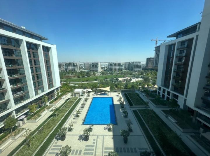 Some places just sort of welcome you in. This three bedroom apartment at Park Heights in Dubai Hills Estate sits right above all the green and blue you want to see when you come home. I probably spent too long just looking out the window here. The light comes in strong across the living room and you can look out and see the pool and the park below. Kids running sometimes. Sometimes it is just quiet and it almost feels like the trees are doing all the talking.