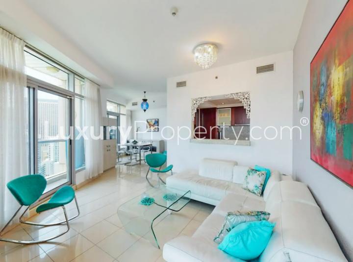 The thing I notice right away is the space. A lot of Dubai Marina rentals squeeze everything a bit tight to fit in the action, but this apartment feels open and easy. Both bedrooms are real rooms, not corners made into bedrooms. Even if you have a big bed and a desk or sofa, you will still have room to breathe. The main living area invites you to actually stay a while, like the kind of place friends settle down after dinner instead of standing to leave right away. Light pours in during the day, real sunlight, and it just makes everything feel brighter and more open.