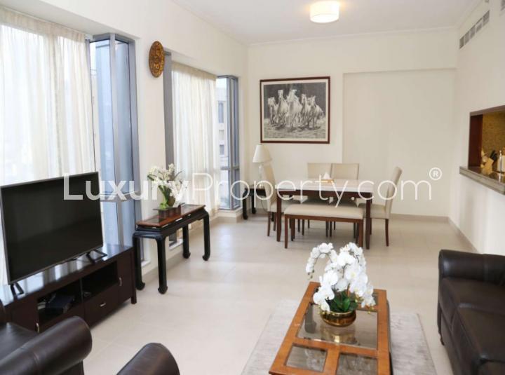 This two bedroom apartment is truly generous with space and I mean it. You get well over fourteen hundred square feet which is not something you see often if you want to live in the middle of Dubai. I found myself just pausing in the living area for a minute looking out at the city and imagining how the Downtown lights would look at night. During the day you can spot birds flitting around the trees outside and sometimes you almost forget about your phone because it is just so nice to watch the city go by from your own window.
