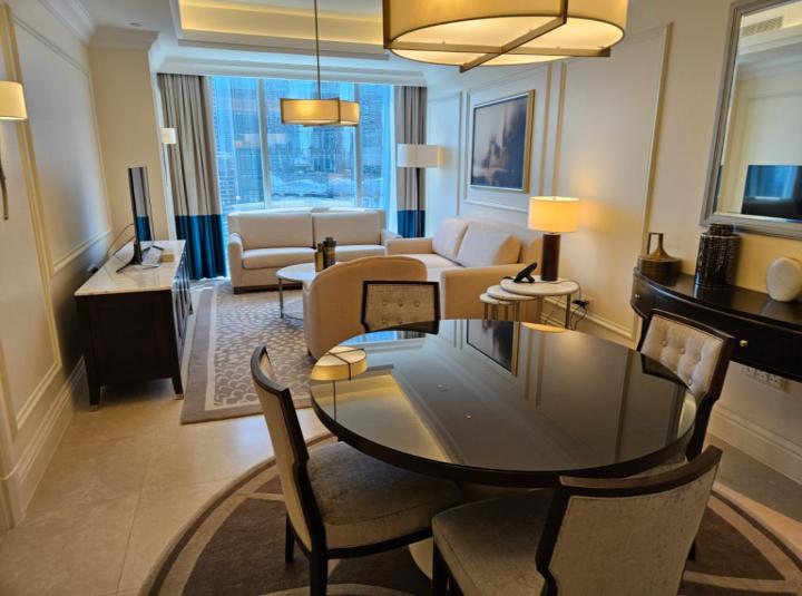 I stood by the window for a bit and just watched the world below. You cannot really get tired of that view. There's the Burj Khalifa right across and later in the day the Dubai Fountain starts up and from up here the lights look scattered like little stars moving in sync. You notice how life goes on down there, so busy and full but in this apartment it feels calm. The windows are big so nothing really blocks you from the whole city. You can even spot folks heading into Dubai Mall if you look long enough. Sometimes I think this place almost lets you forget your phone for a while since the views are actually that good.