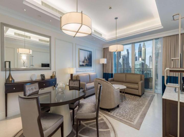 Some homes really do put you at ease the moment you walk in. This one bedroom apartment in The Address The BLVD in Downtown Dubai is one of those quiet surprises. Right away you feel something relaxed about it maybe it's the soft light coming in through those huge windows or maybe it's how calm everything looks spread out below. I was there not long ago and honestly I just ended up standing by the glass for a little bit letting the city move by outside. You get the whole expanse of DIFC right in front of you all those towers and sometimes you spot the metro sliding by in the distance. If you like a bright place this is honestly a nice one someone really thought about how to pull all the daylight in without making it harsh.