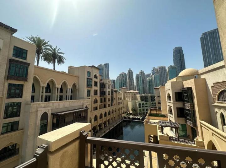 Sometimes you just walk into a place and everything feels a bit calmer than you expected. That is honestly how it felt stepping through the door of this three bedroom apartment in Souk Al Bahar at The Old Town Island. High up so you kind of pull away from the city for a bit. You get this feeling of space right away. The living area is big and super open, with all this light coming through from those big windows. You actually want to slow down and just stand there for a second because the city looks different from this angle. You have a full sweep of the Downtown Dubai skyline and at certain hours the sunset throws gold across the whole apartment. It is one of those homes where even if you are not expecting to, you end up spending more time by the windows just letting your eyes wander.