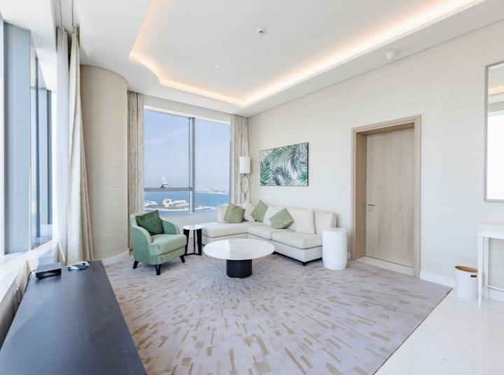 Some places almost slow you down the second you step in. That is how I felt when I opened the door to this furnished one bedroom apartment in The Palm Tower, right in the centre of Palm Jumeirah. It actually has a quiet feeling, even though you know you are minutes from everything. I lingered by the living room window for a while because honestly, those views pull you over. You see the Atlantis standing out across the water then you look a little further and see the Burj Al Arab catching the afternoon sun. It hits you that this really is one of the best spots on the Palm for just soaking in what makes Dubai so different.