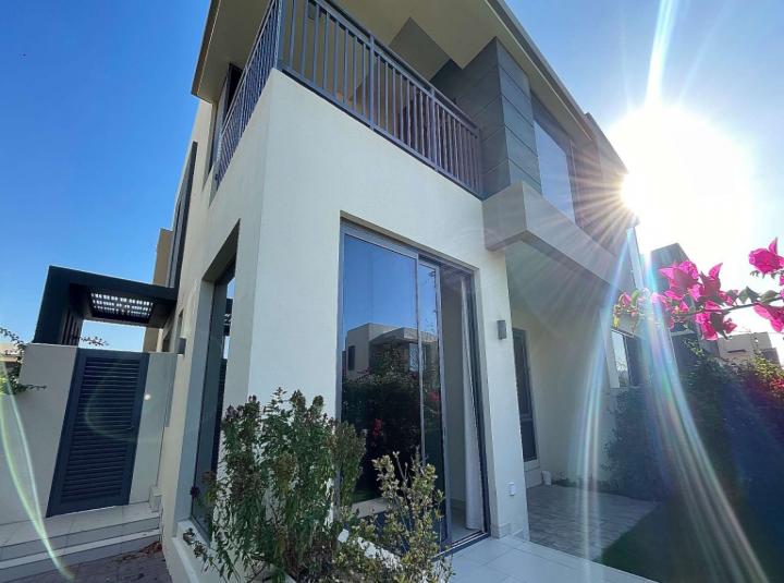 You can always tell when a home feels right before you even finish walking through the front door. This five bedroom townhouse in Maple at Dubai Hills Estate really does that. When I first stepped in I actually paused for a second by the living area just to watch the sunlight coming in across the floor. There is something about the way the light moves here late in the afternoon that makes the whole space feel open and warm. If you care about green space Dubai Hills is already at the top of the list but this place sits in one of those prime spots right next to the green belt so when you look out the window or through the sliding doors you do not see lots of cars or crowds just a real sense of peace and lawns that seem to go on forever.