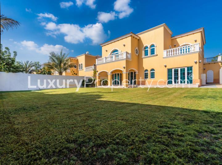 Some homes just have a certain feel as soon as you step inside. This five bedroom villa in Legacy at Jumeirah Park really does that. I remember walking in and just pausing by the living room window for a minute. The natural light was pouring in and honestly there was this gentle quiet even though it is still Dubai outside. It just feels tucked away somehow but never cut off.