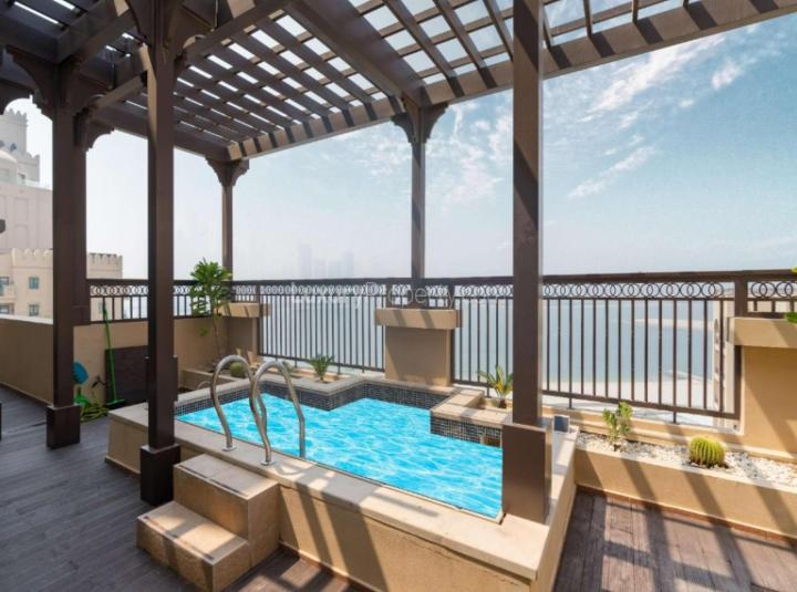 The upper level also has these two terraces where you can step outside and see the Arabian Sea right there below or look out over the Dubai skyline with a cup of coffee in hand. Evenings are something else out here. Sometimes you catch the city lights flickering in the distance or hear the soft breeze straight off the water. The lower level terrace though is something special, and it is big. You can actually look forward to those weekend moments when you want to swim in your own private pool or just read in the shade. I could see myself just sitting there, forgetting the phone for an hour or two.