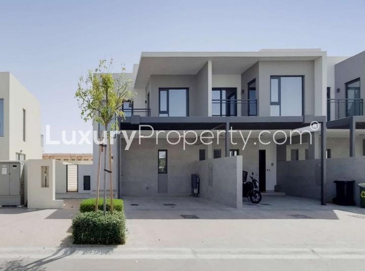 Some homes just have a way of making you slow down for a second when you walk in. That happened to me with this four bedroom townhouse in Camelia at Arabian Ranches 2. Something about the light coming in through the big sliding glass doors actually made me stop and just kind of breathe a bit. It sits right in the middle of this fresh neighbourhood so you get that feeling of being in a community but never boxed in. You kind of feel tucked away but the main gate is still a pretty quick drive if you ever need to get out.
