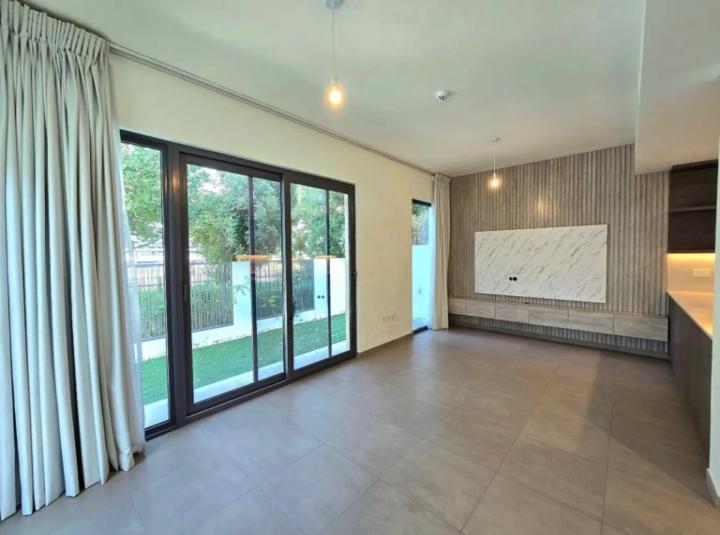 Some homes just have a certain feeling even before you get all the way inside. This four bedroom townhouse for rent in Elan at Tilal Al Ghaf really had me pause for a second and take a long breath. Maybe it is the way the light comes in from these big windows or just the open plan layout but you honestly feel like you have a bit more room to move and actually live comfortably not just exist in a space. You get this soft brightness as soon as you step in. I stood there for a minute looking out into the garden and it just felt more peaceful. Kind of private in a way that you just do not find much in Dubai these days. And it helps that this townhouse is a single row so you do not have anyone looking right into your windows which is a small thing but you start to really appreciate it. That outdoor spot could be your new weekend hangout and you can actually imagine kids running around on the grass or everyone coming together as the sun starts to dip and the barbecue smell drifts over.