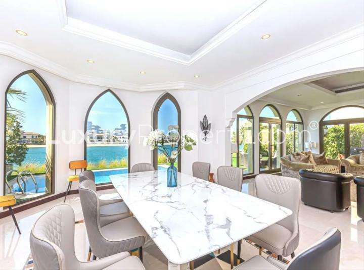 At five thousand square feet of space, you have room to breathe and proper room for living. The plot itself is just under seven thousand square feet, so both inside and outside have that open, sort of airy feeling you only find in certain Garden Homes. This one is not furnished, so you can bring your own style and really make it yours. That makes a difference. Nothing about the layout is confusing. It just makes sense, which is honestly rare. The atrium entry has this welcoming kind of vibe. Sometimes the light filters in and you get these patterns on the walls. It is partially upgraded too, so finishes feel fresh and modern where it matters, but it still has that classic Palm Jumeirah essence that people move here for.