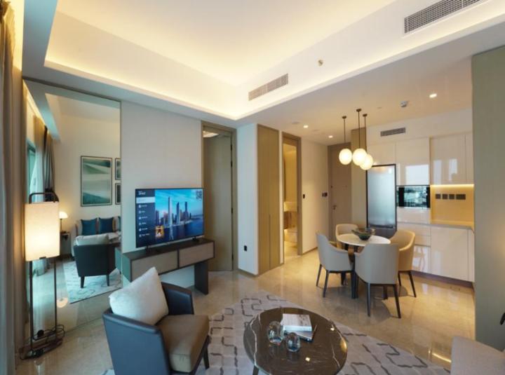 Some homes just make you want to drop your bags and stay a while. This one bedroom apartment at Address Harbour Point in Dubai Creek Harbour really does that. When I first walked in, the light felt soft and easy, and even though you can see the skyline and water out the windows, it honestly feels quiet inside. It is fully furnished too, so you do not need to worry about moving in with a hundred boxes. And the thing is, it does not feel like those show apartments where no one ever really cooks or lives there. You can tell someone could actually settle in and make a nice cup of tea. The living area is open plan and flows right out to your own private balcony. Sometimes you stand there and just watch the light change on the water across Dubai Creek and the towers in the distance. It sort of makes you want to just slow down for a minute.