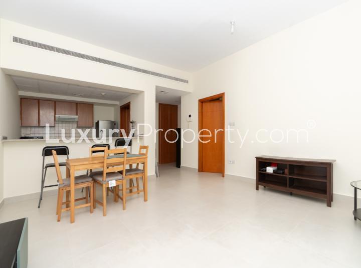 This apartment offers a park-side, community-focused lifestyle. Surrounded by landscaped greenery, shaded pathways, and serene lakes, it provides a calm and balanced environment while still being close to Dubai’s vibrant urban hotspots.