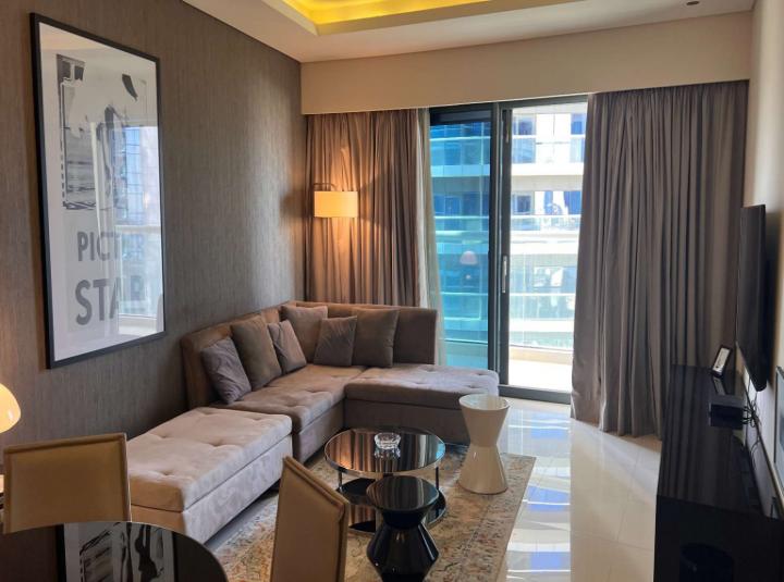 Honestly the space here is pretty much exactly what you hope for in a central Dubai apartment. The living room does not force you to squeeze around things or shuffle past furniture. You can properly put your feet up after work. You notice it has got these high ceilings and light floors so the room feels big even when the curtains are drawn. And with the way the kitchen is set up you might actually want to stay in and cook something more than just a quick snack. It has proper appliances not just the basics. You open a cupboard and someone was clearly thinking about what you would want to put in there. I have seen kitchens in Business Bay that look nice but do not seem usable. This one you really can see yourself making dinner or even inviting a few friends around.