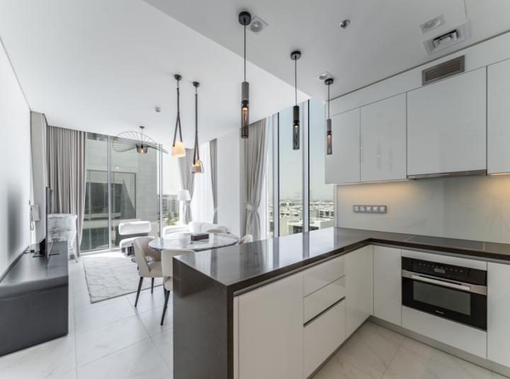 Some places just give you that little pause when you walk in. This one bedroom apartment in Residences 30 at District One kind of does that without trying. I stepped inside and almost forgot about the traffic outside. There is a calm you feel here that is hard to explain until you have stood in the quiet living room and taken a look at those skyline views. You see all of Dubai ahead of you, with the blue of the lagoon stretching off to one side. The sunlight comes in differently when you are this high up and it sort of bounces off the marble finishes in a soft way.